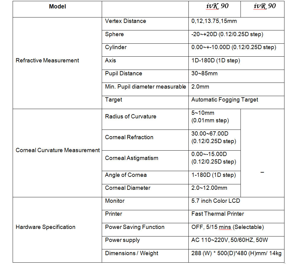 - Corneal Curvature and diopter measurement function ( ivK 90 )
